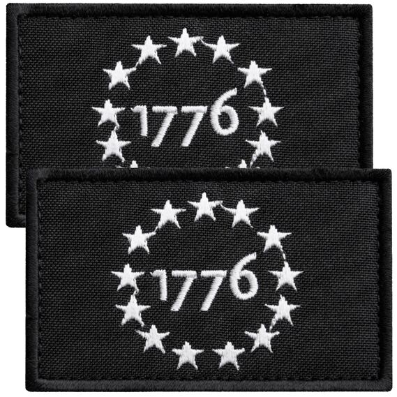 Набор шевронов 2 шт тактический США 1776 Патриот, военная вышитая аппликация, нашивка с липучкой - белый и черный