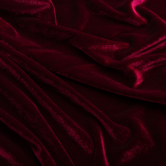 Ткань костюмная бархатная, бархат, блестящая ткань плательная стрейчевая 300 гр/м2 бордо