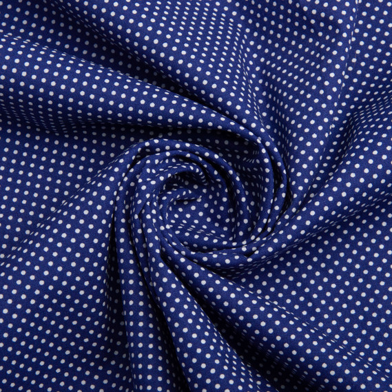 Ткань поплин, хлопок, натуральная ткань горошок синій