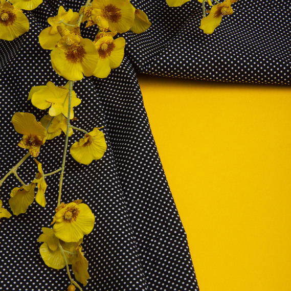 Ткань поплин, хлопок, натуральная ткань горошок чорна