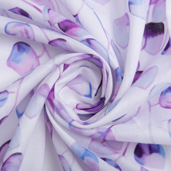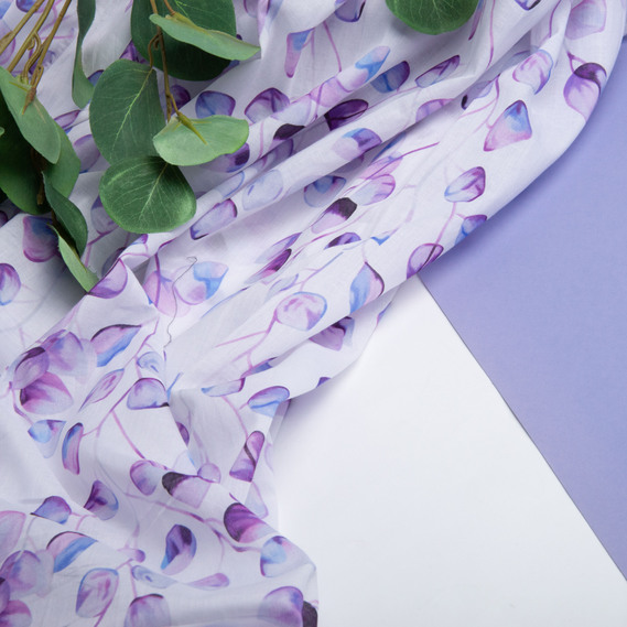 Ткань Батист Листочек, хлопок, натуральная ткань для одежды, хлопок бузок