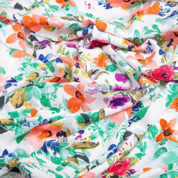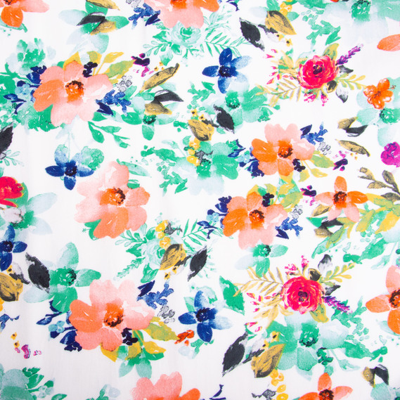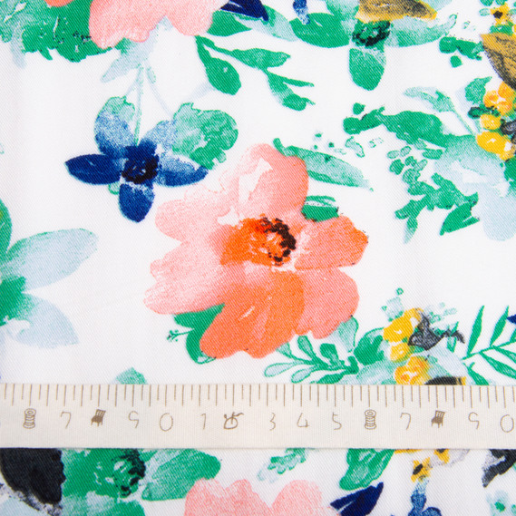 Ткань штапель твил принт, 140 см, 160 гр/м2, для платьев, блузок, юбок V-1/1 квіти корал
