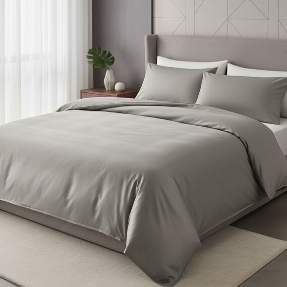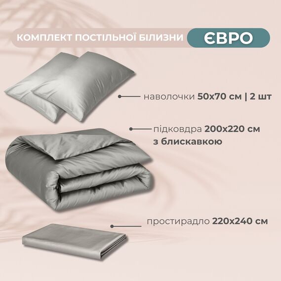 Комплект постельного белья IDEIA евро 200х220 сатин хлопок премиум сірий/беж