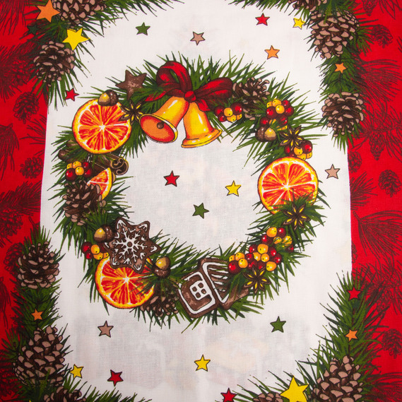 Ткань полотенечная вафельная Праздничная Ёлка 150 см 160 гр/м2, хлопок, натуральная, плотная, впитывающая, ткань для полотенец