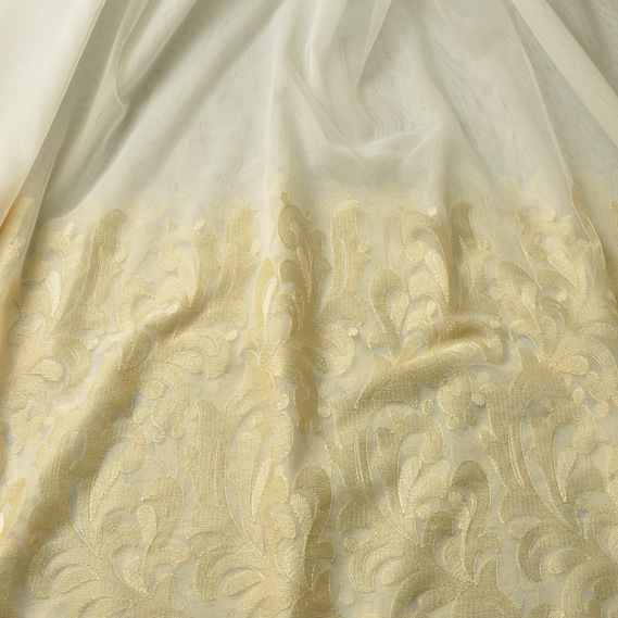 Тюль органза сітка з вишивкою Фрезія V-342 золото