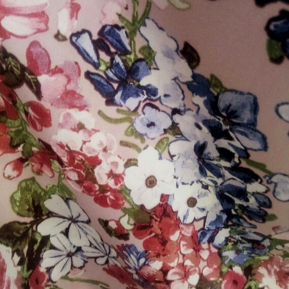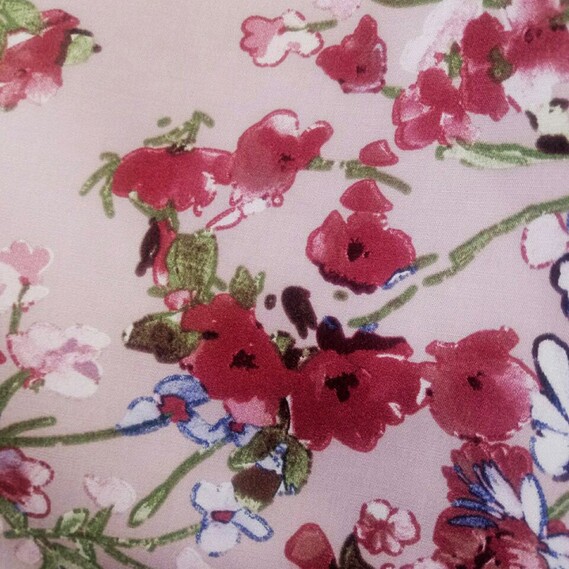 Штапель стрейч принт V-6/2 Фаіна пудра, Квітковий