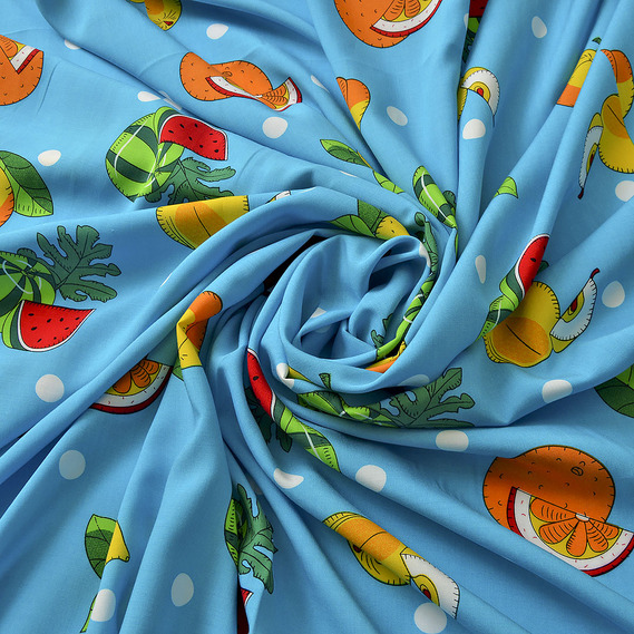 Тканына плательна віскоза штапель Епізоди 115 гр/м2 вітамінка т/блакитна, Флора