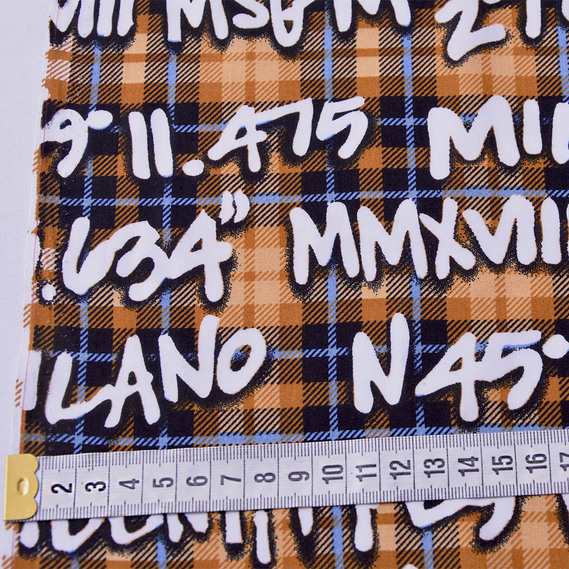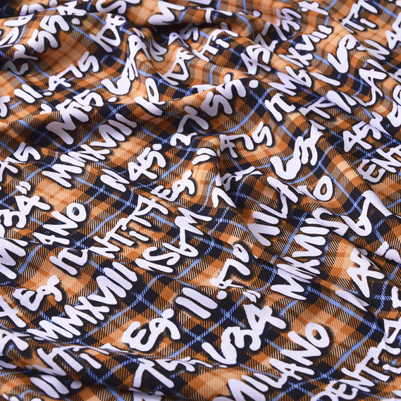 Тканына плательна віскоза штапель Епізоди 115 гр/м2 клітина рудий, Написи
