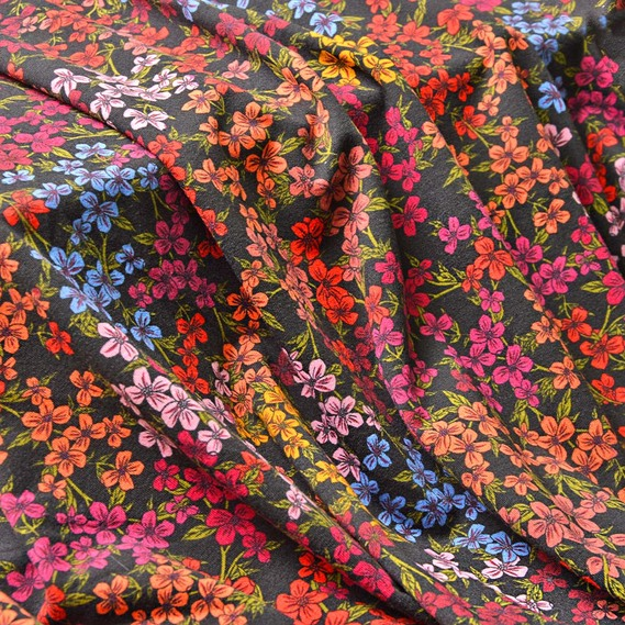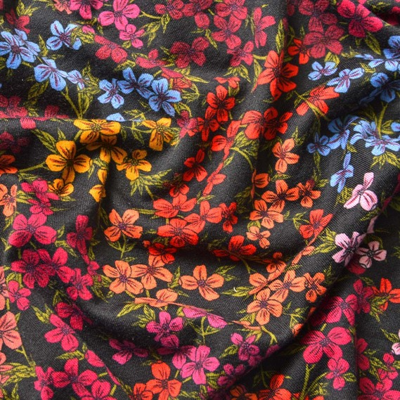 Тканина трикотаж Спорт трикотажне полотно для спортивного одягу V-5/1 цвітіння на чорному, Квітковий