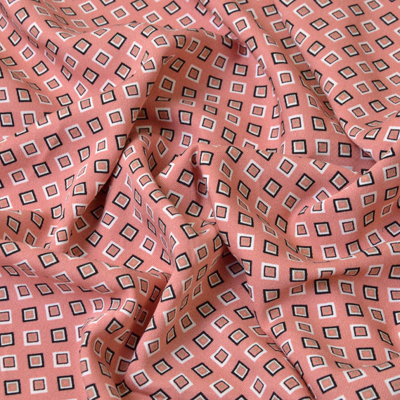 Тканина штапель твіл принт, 140 см, 160 гр/м2, для суконь, блузок, спідниць V-94/1 ромб пудра