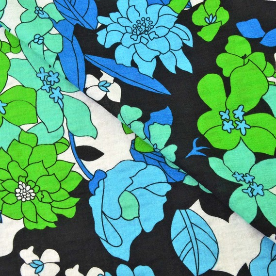 Батист Квітковий мікс зелений/блак/бірюза, Квітковий