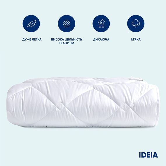 Ковдра літня двоспальна 175х210 см IDEIA, антиалергенна, біла, легка ковдра для літа, для готелів та дому