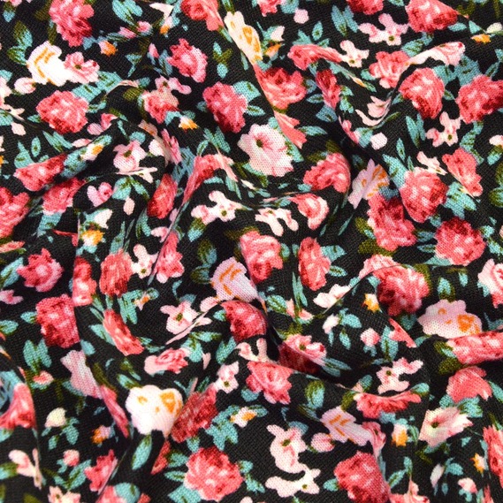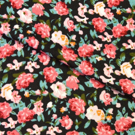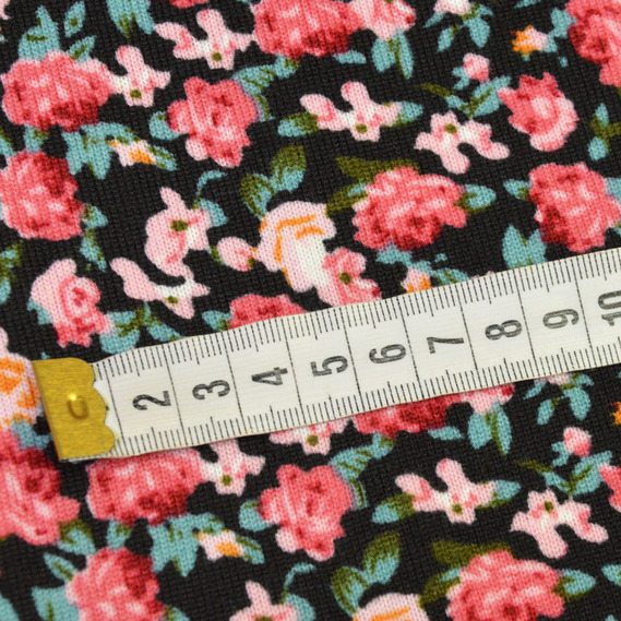 Трикотаж Трояндочки т/рожевий на чорному, Квітковий
