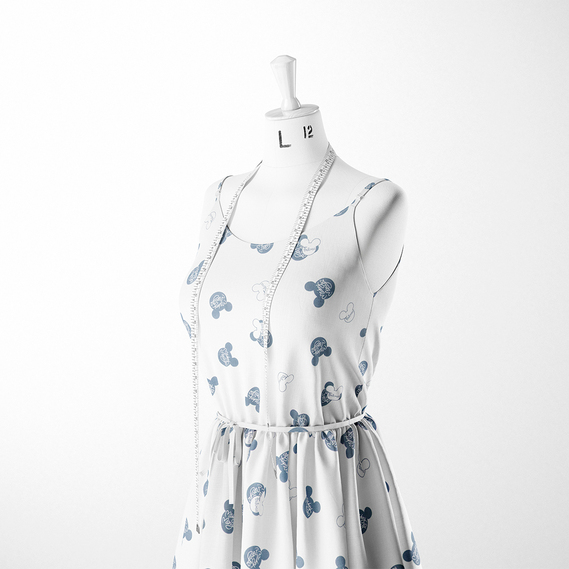 Тканина бавовняна платтяна Муслін двошарова 140 см, 120 г/м2 для суконь, блузок, спідниць, халатів, костюмів Mickey Mouse біла, Дитячий