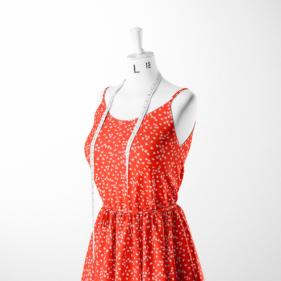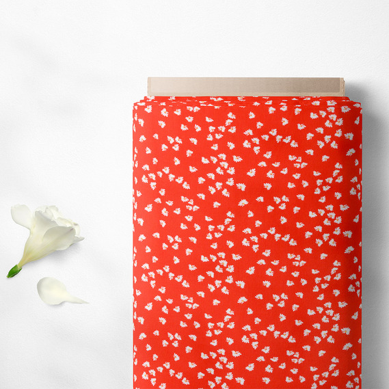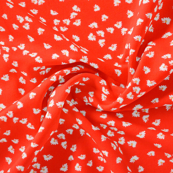 Штапель принт V-887/3 ромашкове поле червоний, Квітковий