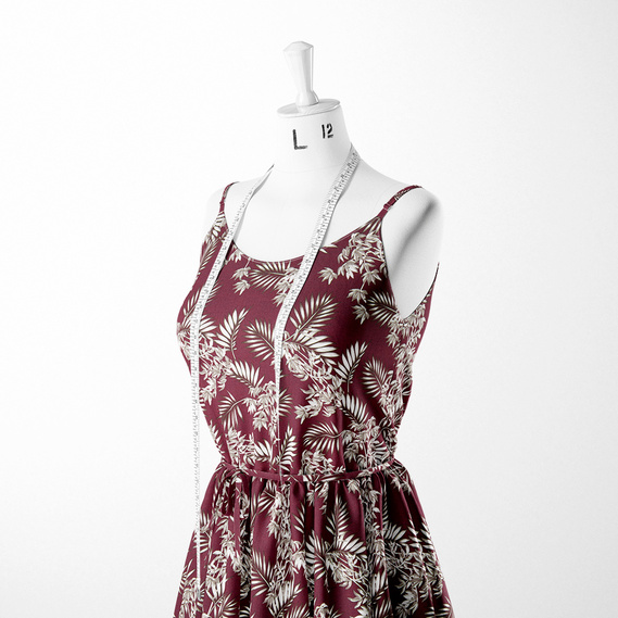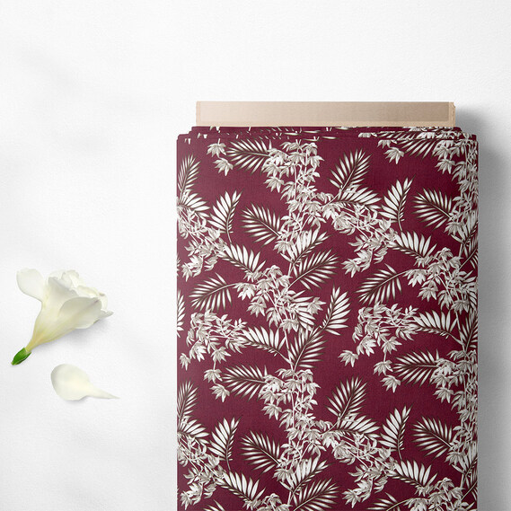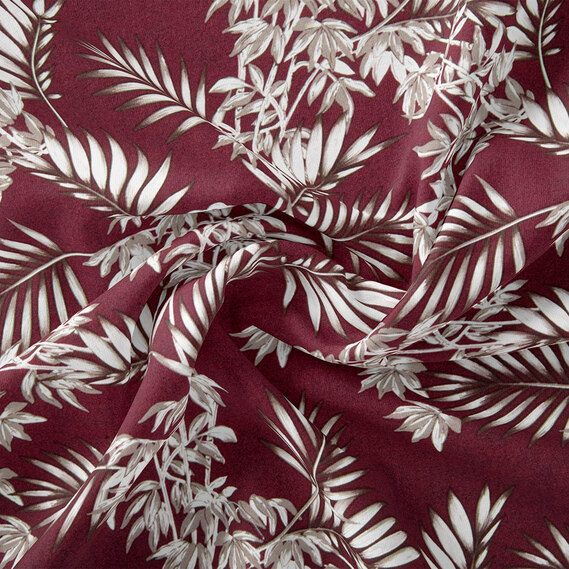 Тканина штапель твіл принт, 140 см, 160 гр/м2, для суконь, блузок, спідниць тропіки бордо