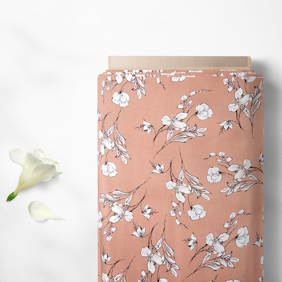 Тканина штапель твіл принт, 140 см, 160 гр/м2, для суконь, блузок, спідниць Лайла карамель
