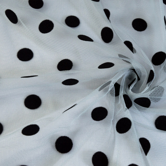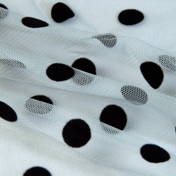 Тканина сітка стрейч Горох з флоком полин чорна