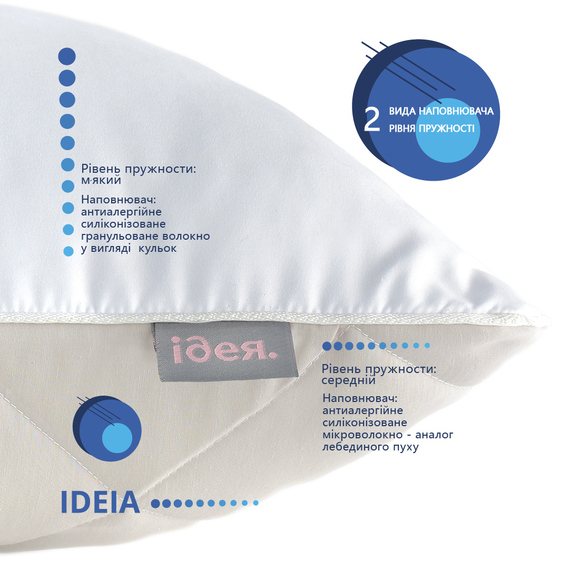 - Наповнювач Антиалергійне силіконізоване волокно: 1 камера (мікроволокно), 2 камера (у вигляді кульок)