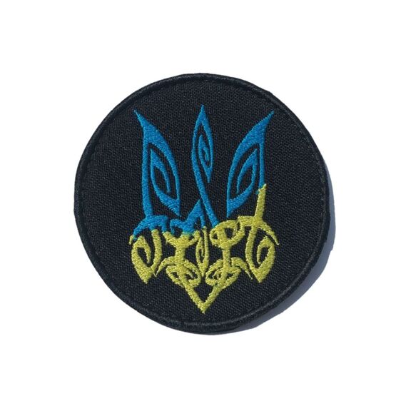 Шеврон нашивка на липучці Тризуб України художній, вишитий патч d7,2 cм чорний
