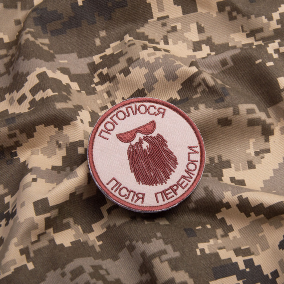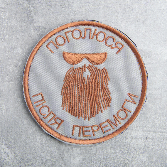 Шеврон нашивка на липучці Поголюся після перемоги, вишитий патч 8х8 см мідь