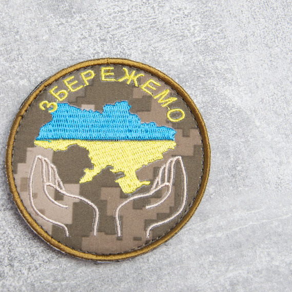 Шеврон на липучці Збережемо Україну 8 см піксель