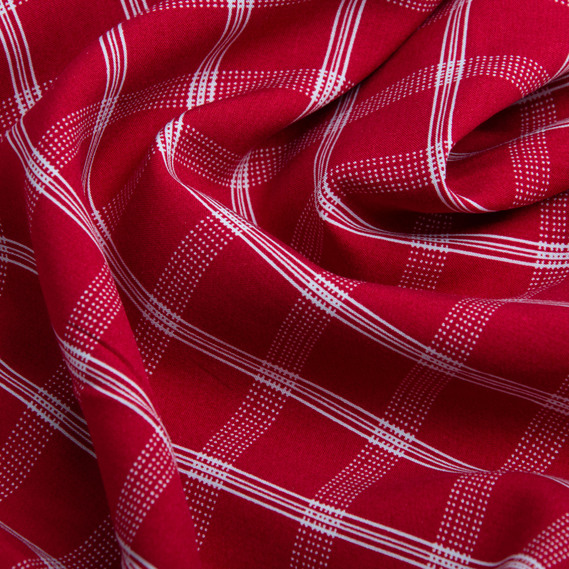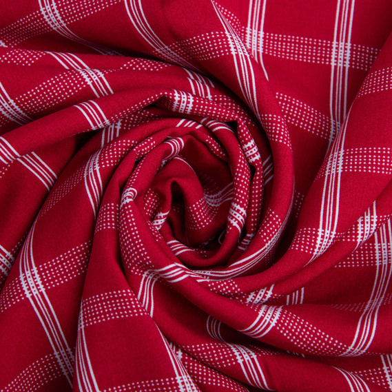 Тканина плательна штапель віскоза, платтяна тканина натуральна, для блузок, суконь, спідниць клітина червона