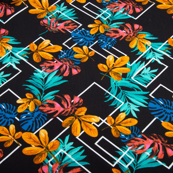 Тканина плательна штапель віскоза, платтяна тканина натуральна, для блузок, суконь, спідниць манстера чорно/синя