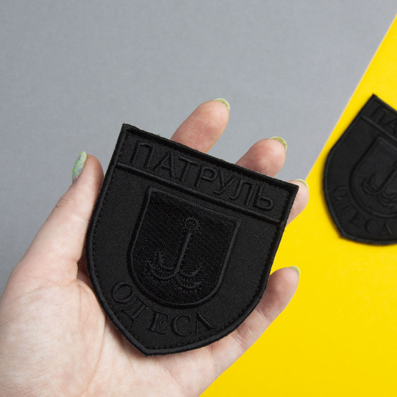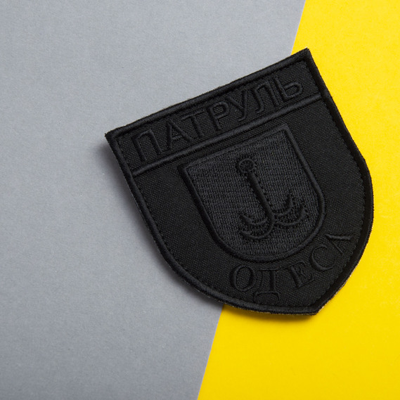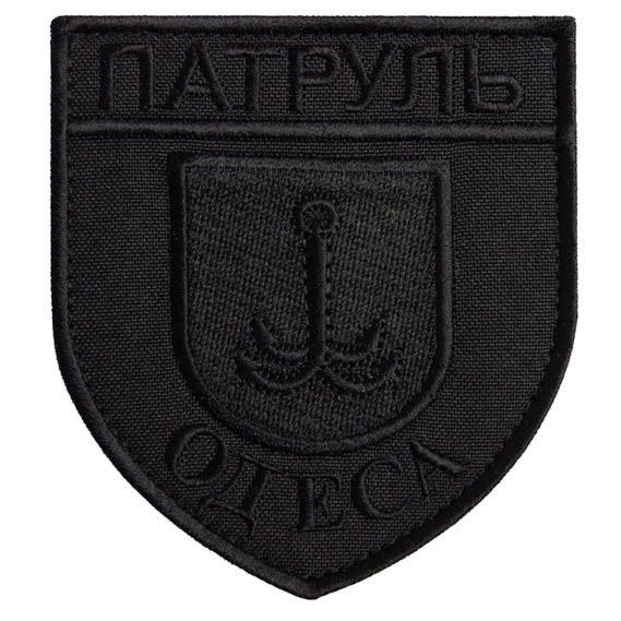 Шеврон нашивка на липучці Патруль Одеса, вишитий патч 8х9 см чорний