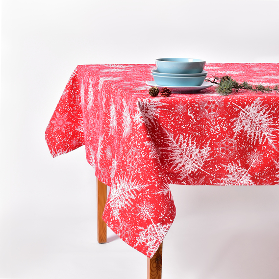 Скатертина Новорічна 170х260 см з водовідштовхувальним просоченням святкова бавовна хвоя червона