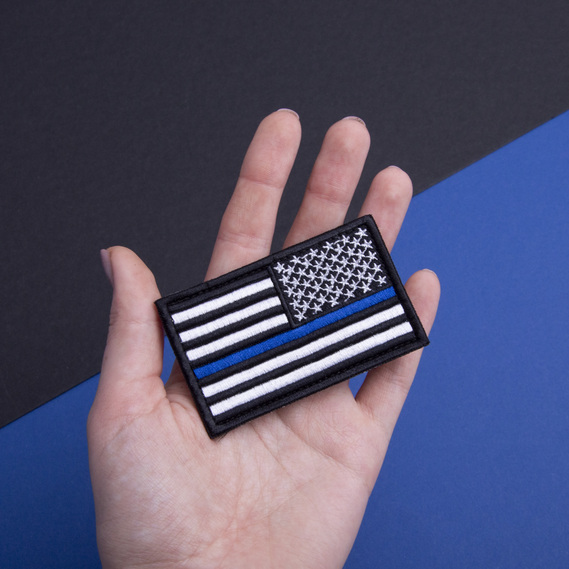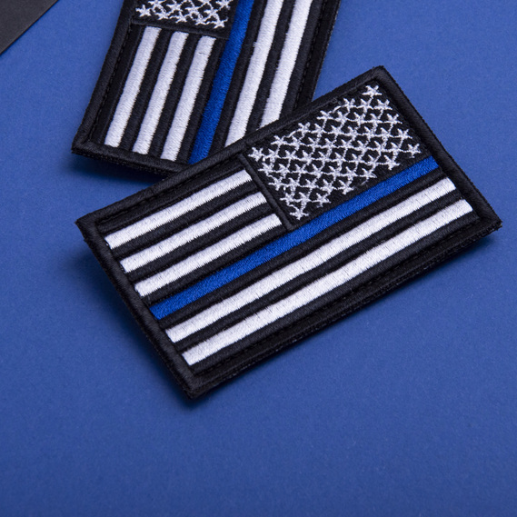 Набір шевронів 2 шт з липучкою Прапор Поліції США відзеркаленний, вишитий патч 5х8 см Поліція