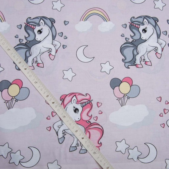 Тканина бязь ранфорс для постільної білизни, бавовна, 130 гр/м2, 240 см 8919 Єдиноріг рожевий