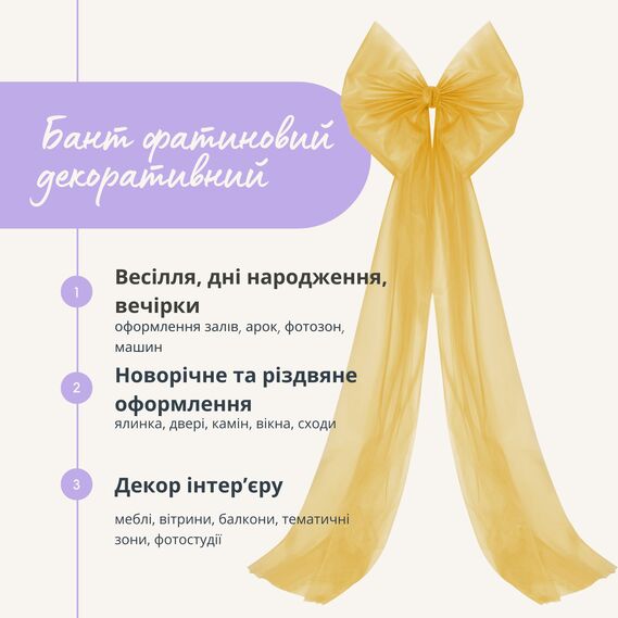 Бант декоративний 65х200 см великий фатин фатиновий святковий жовтий