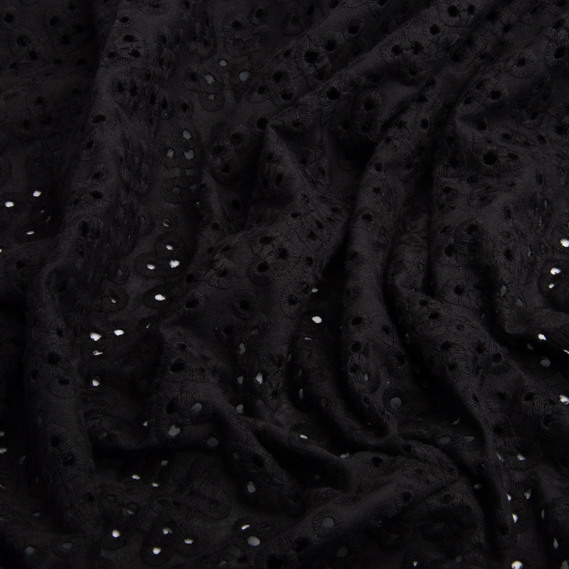Тканина батист прошва Моллі, 130 см, 123 гр/м2, бавовна, натуральна тканина для одягу чорна