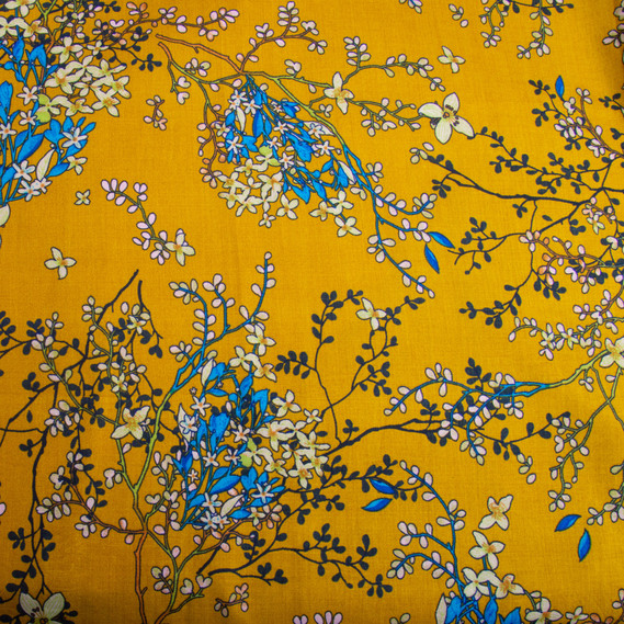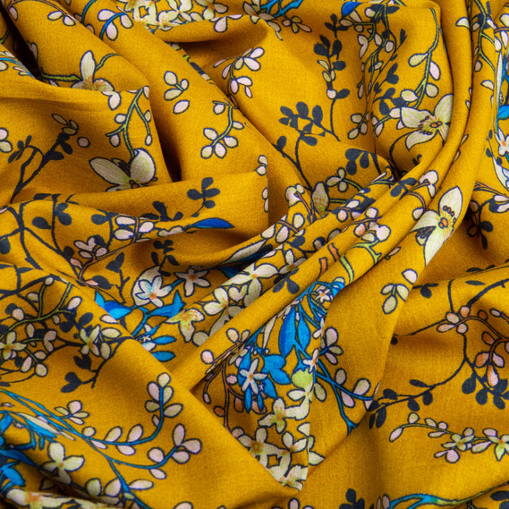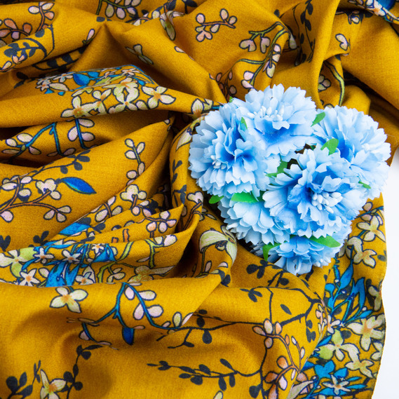 Тканина платтяна штапель віскоза 145 см 140 г/м2 для суконь, спідниць, брюк, комбінезонів, дитячого одягу гілочка гірчиця