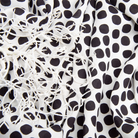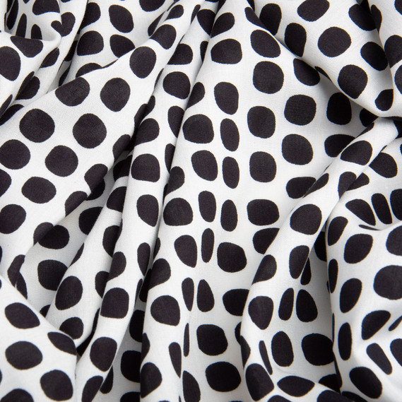 Тканина платтяна штапель віскоза 145 см 90 г/м2 для суконь, спідниць, брюк, комбінезонів, дитячого одягу горохи чорна
