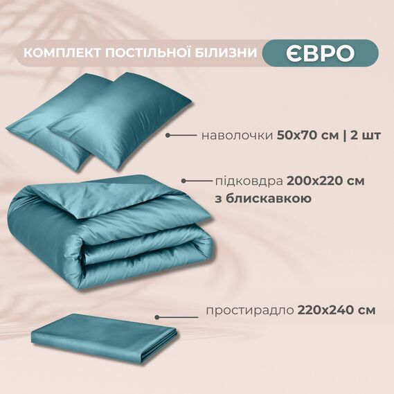 Комплект постільної білизни IDEIA євро 200х220 сатин бавовна преміум м’ята