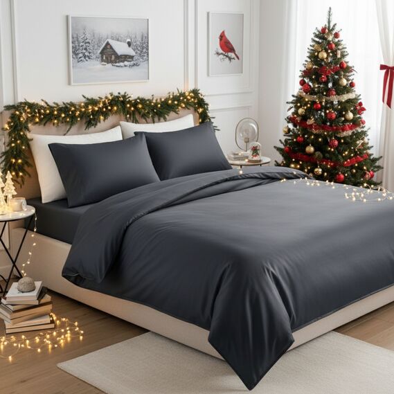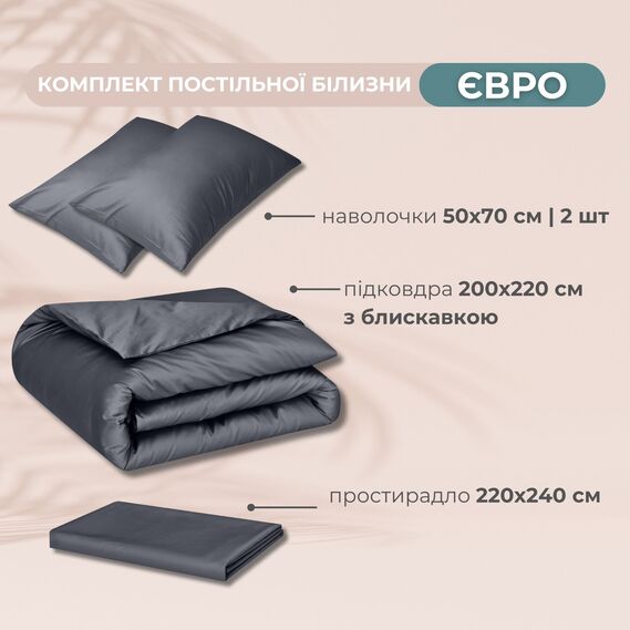 Комплект постільної білизни IDEIA євро 200х220 сатин бавовна преміум т/сірий